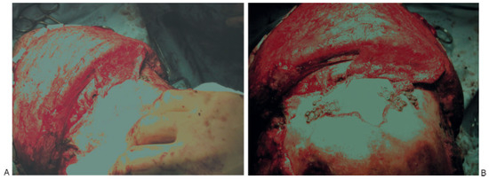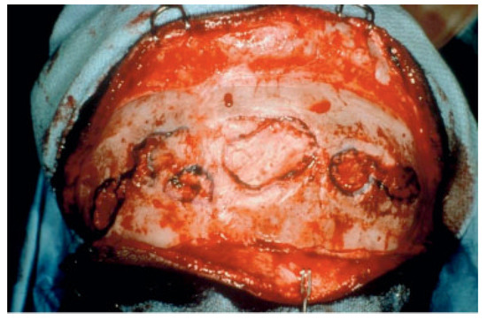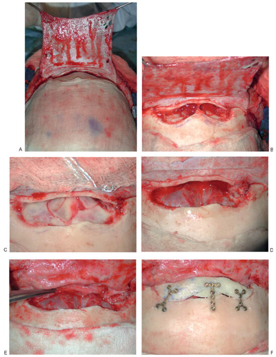 - Thaller, S.R.; Donald, P. The use of pericranial flaps in frontal sinus fractures. Ann Plast Surg 1994, 32, 284–287. [Google Scholar] [CrossRef]