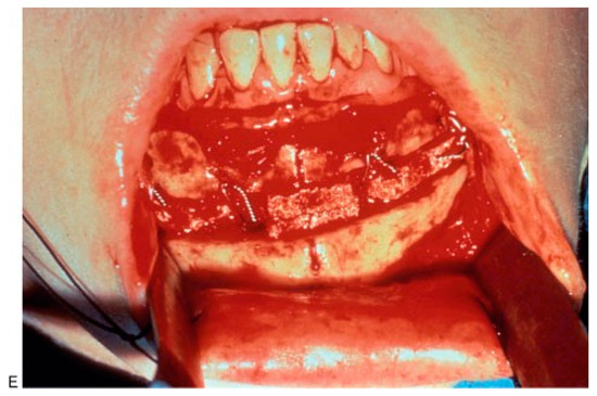 - Clokie, C.M.; Sa’ndor, G.K. Reconstruction of 10 major mandibular defects using bioimplants containing BMP-7. J Can Dent Assoc 2008, 74, 67–72. [Google Scholar] [PubMed]