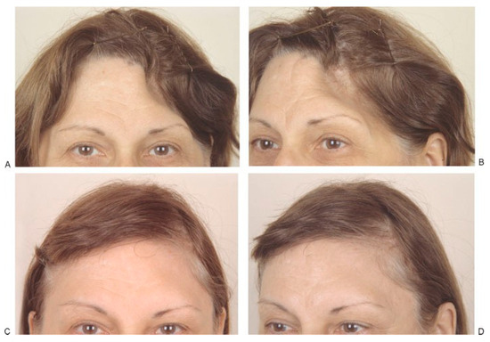 (A,B) Left frontotemporal defect in 48-year-old woman caused by removal of infected bone flap 2 years earlier. Frontal and three-quarter views shown before surgery. (C,D) Frontal and three-quarter views 6 months after reconstruction of full-thickness defect with hydroxyapatite bone paste (Bone Source). (Reprinted with permission from Zins JE, et al. Contour alteration of the facial skeleton. In: Achauer BM, Guyuron B, eds. Plastic Surgery: Indications, Operatons, Outcomes. Philadelphia: Elsevier; 2000:2829. Copyright Elsevier 2000).