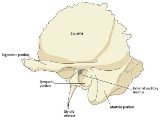 - Gunlock, M.G.; Gentry, L.R. Anatomy of the temporal bone. Neuroimaging Clin. N. Am. 1998, 8, 195–209. [Google Scholar] [CrossRef] [PubMed]