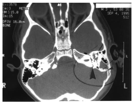 - Hasso, A.N.; Ledington, J.A. Traumatic injuries of the temporal bone. Otolaryngol. Clin. North. Am. 1988, 21, 295–316. [Google Scholar] [CrossRef] [PubMed]