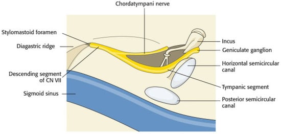 - Proctor, B. The anatomy of the facial nerve. Otolaryngol. Clin. North. Am. 1991, 24, 479–504. [Google Scholar] [CrossRef] [PubMed]