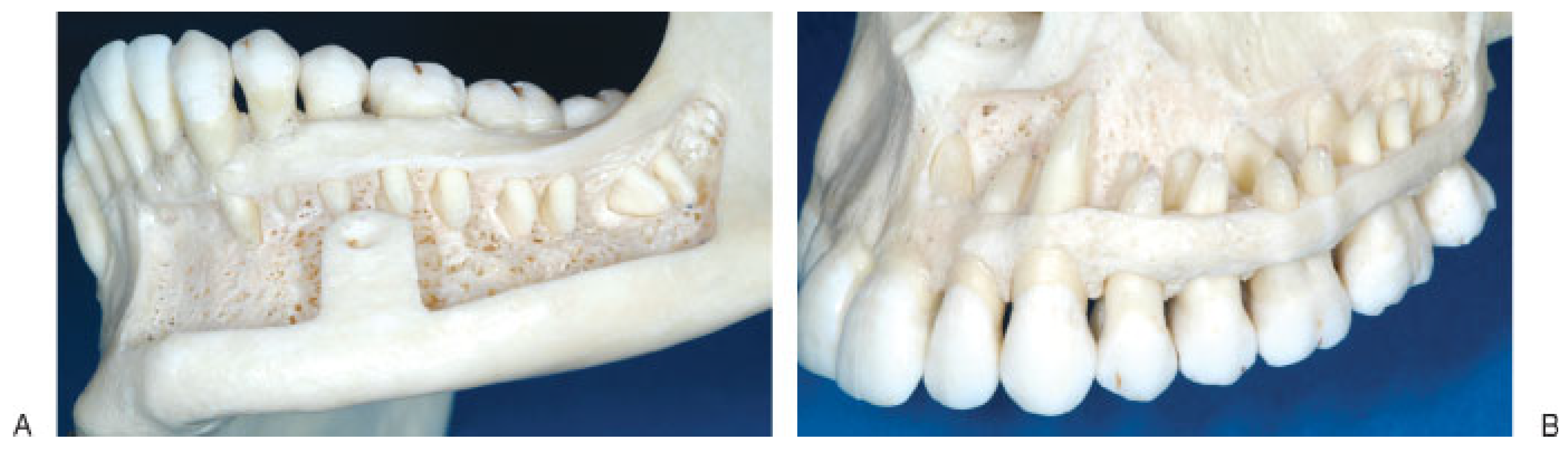 Additional risk factors for damage are the dense approximation of the dental roots in the lower front and in the dorsal portion of the alveolar quadrants, notably between the molars. Furthermore the molar roots can be irregularly oriented in the bucco-lingual direction and have polygonal axial cross sections.