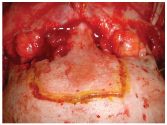 - Bone carving of a plaque that includes the central region of the frontal bone, with its external limits in the supraorbital nerves (Figure 1)