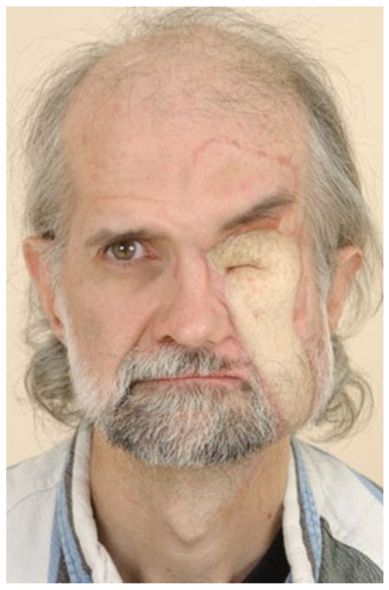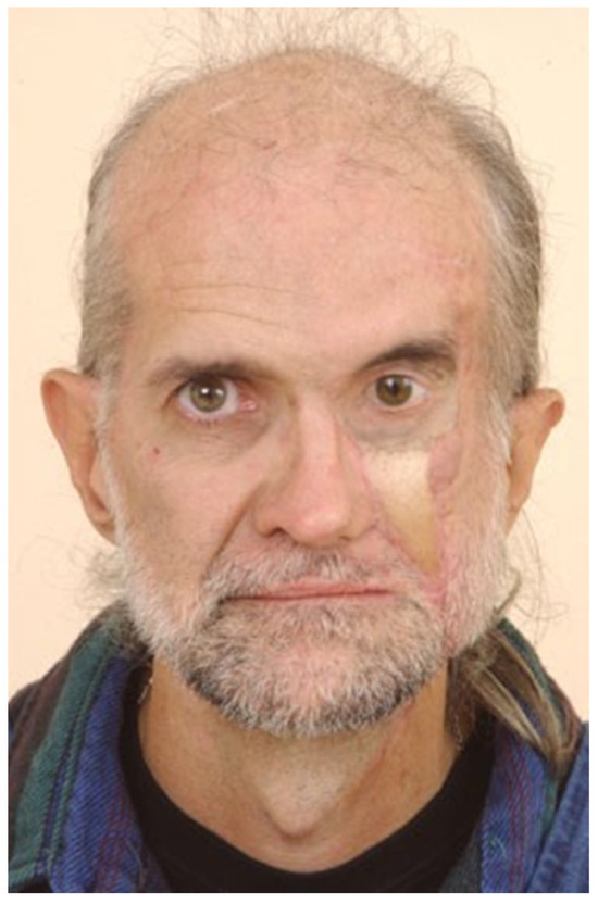 - Tweed, A.E.J.; Manktelow, R.T.; Zuker, R.M. Facial contour reconstruction with free flaps. Ann. Plast. Surg. 1984, 12, 313–320. [Google Scholar] [CrossRef]