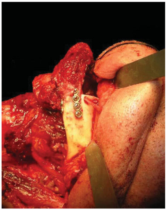 - Shpitzer, T.; Neligan, P.C.; Gullane, P.J.; et al. Oromandibular reconstruction with the fibular free flap. Analysis of 50 consecutive flaps. Arch Otolaryngol Head Neck Surg 1997, 123, 939–944. [Google Scholar] [CrossRef] [PubMed]