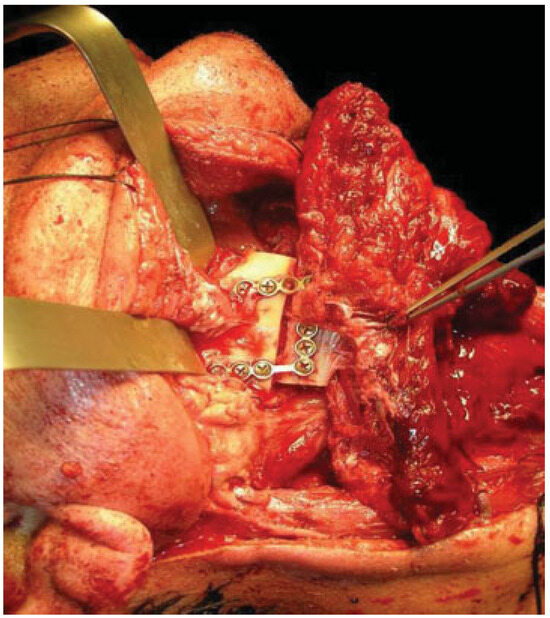 - Hidalgo, D.A. Fibula free flap: a new method of mandible reconstruction. Plast Reconstr Surg 1989, 84, 71–79. [Google Scholar] [PubMed]
