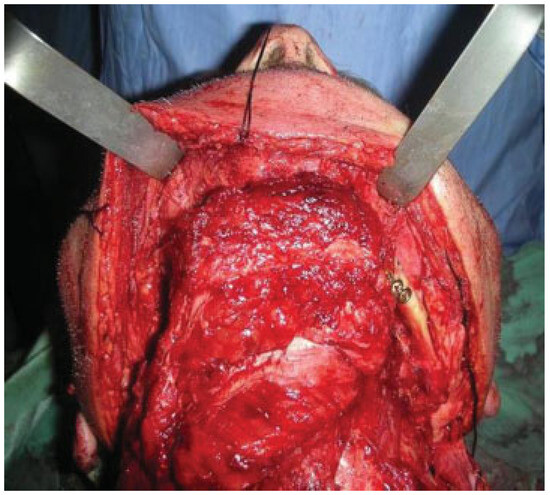 - Baker, N.J. Modification of the skin incision to allow versatility in placement of the skin paddle when raising a fibular osteocutaneous flap. Br J Oral Maxillofac Surg 2005, 43, 535–536. [Google Scholar] [CrossRef] [PubMed]