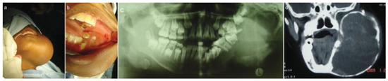 - Padwa, B.L.; Denhart, B.C.; Kaban, L.B. Aneurysmal bone cyst-“plus”: A report of three cases. J Oral Maxillofac Surg 1997, 55, 1144–1152. [Google Scholar] [CrossRef] [PubMed]