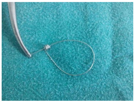 - Ramsay-Baggs, P. The Ulster hook for intermaxillary fixation. Br J Oral Maxilllofac Surg 2011, 49, 324–325. [Google Scholar] [CrossRef] [PubMed]