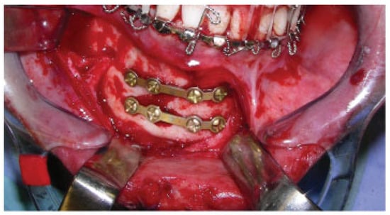 - Klotch, D.W.; Prein, J. Mandibular reconstruction using AO plates. Am. J. Surg. 1987, 154, 384–388. [Google Scholar] [CrossRef] [PubMed]