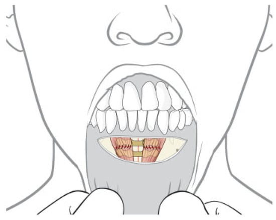 - McCormick, S.U.; Stern, J.C. Split mentalis flap for reconstruction of the anterior mandible. J. Oral Maxillofac. Surg. 1996, 54, 1031–1033. [Google Scholar] [CrossRef] [PubMed]