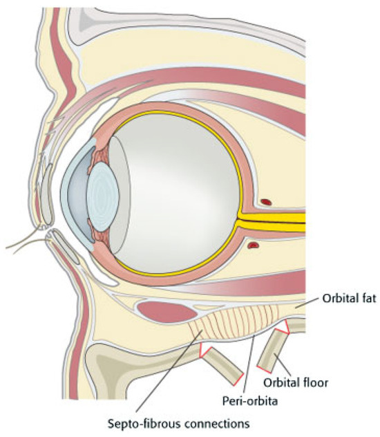- Manson, P.N.; Clifford, C.M.; Su, C.T.; Iliff, N.T.; Morgan, R. Mechanisms of global support and posttraumatic enophthalmos: I. The anatomy of the ligament sling and its relation to intramuscular cone orbital fat. Plast Reconstr Surg 1986, 77, 193–202. [Google Scholar] [CrossRef]