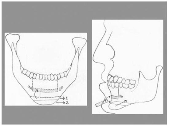 - Meyer, R.A. Mandibular symphysis as donor site in bone grafting for surgical correction of open bite: Report of case. J Oral Surg 1972, 30, 125–130. [Google Scholar] [PubMed]