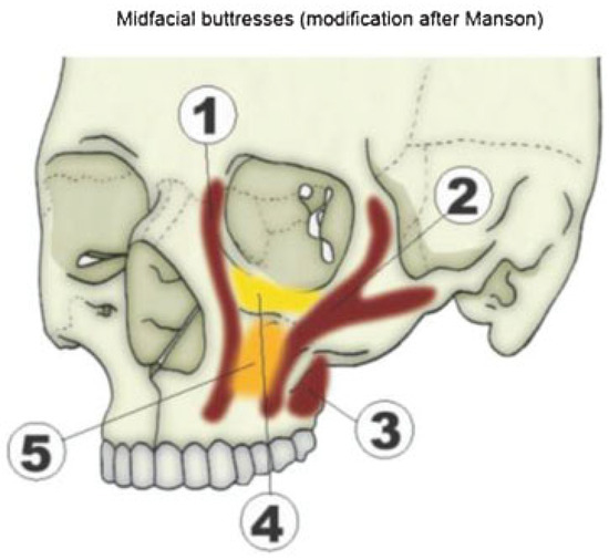 Vertical buttresses of the midface (adapted from Manson) [1].