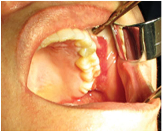 Extraoral examination revealed the submalar swelling as being firm and tender with mild erythema without any fistula. Intraoral examination showed mild bulging in the left upper vestibular buccal region where the local anesthetic was administered. Oral hygiene was judged as fair and the laboratory tests were found to be within the normal range.