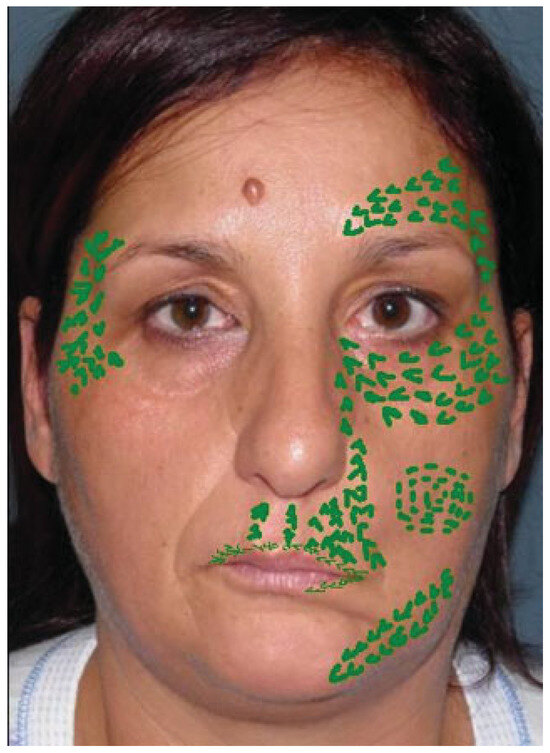 SFG is also used for the rejuvenation of the face in areas such as forehead, zygomas, lips, nose, chin, and mandible [16,17,18].