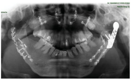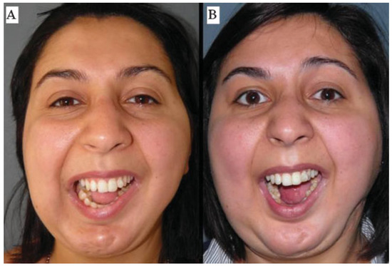 - Kazanjian, V.H. Temporomandibular joint ankylosis with mandibular retrusion. Am J Surg 1955, 90, 905–910. [Google Scholar] [CrossRef] [PubMed]