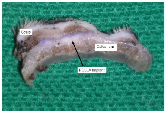 Gross appearance of Poly(D/L)lactide acid plate at 6 months postimplantation. There is no evidence of residual implant material.