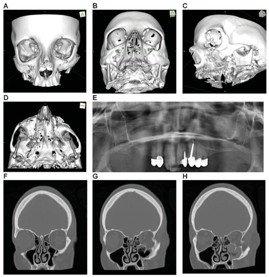 - Raveh, J.; Vuillemin, T. The surgical one-stage management of combined cranio-maxillo-facial and frontobasal fractures. Advantages of the subcranial approach in 374 cases. J Craniomaxillofac Surg 1988, 16, 160–172. [Google Scholar] [CrossRef]