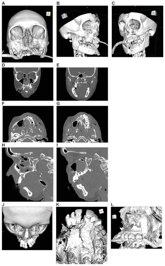 - Manson, P.N.; Shack, R.B.; Leonard, L.G.; et al. Sagittal fractures of the maxilla and palate. Plast Reconstr Surg 1983, 72, 484–489. [Google Scholar] [CrossRef]