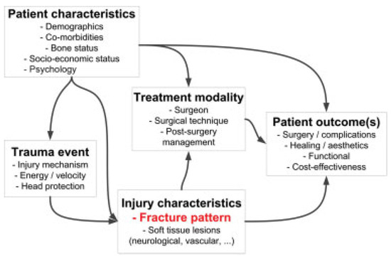 Initially, it may seem reasonable to include all conceivable factors and patient details into the classification. However, this would become unmanageable in routine clinical use. These pertinent factors all contribute to the daily treatment decisions made by surgeons (Figure 1). Although, the observed fracture pattern is only one of these factors, it is still the most relevant clinical feature for establishing a diagnosis and thus supporting a treatment decision.