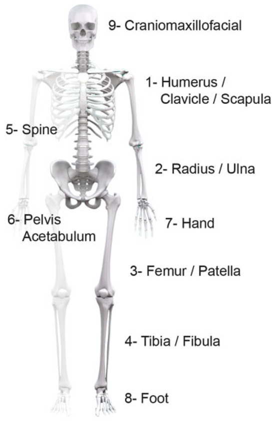 - Martin, J.S.; Marsh, J.L. Current classification of fractures. Rationale and utility. Radiol Clin North Am 1997, 35, 491–506. [Google Scholar]