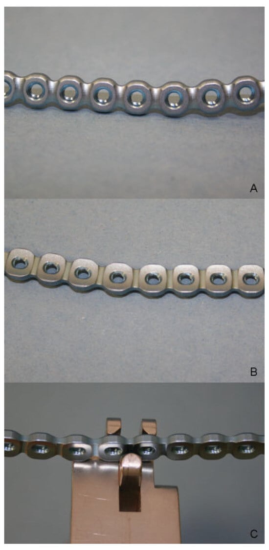 6]. By contrast, plate stability and in particular resistance to fracture are important factors in the case of primary mandibular reconstructions with reconstruction plates alone or in the case of tap loss. Although implants with a thickness ranging between 2.4 mm and 3 mm are used, plate fractures are not uncommon and occur in regions that are particularly subject to biomechanical loading, i.e., the mandibular angle or the transition zone between residual bone and fixation plate. Reconstruction plates that are more resistant to fracture and are not thicker than available plates could offer an advantage. Plates are probably more resistant to fracture if they do not have to be bent when they are adapted to the patient’s mandible and do not require predefined bending points, which are a standard feature of conventional reconstruction plates. Such bending points are points of weakness that reduce plate stability but are necessary for bending current standard plates (