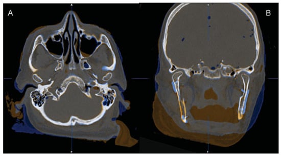 The fusion of preoperative and postoperative CT datasets showed that the positions of the two residual rami and condyles after the fixation of the CAD/CAM-fabricated reconstruction plate were almost identical to those before resection (