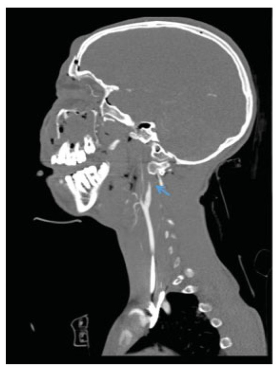 - Malhotra, A.K.; Camacho, M.; Ivatury, R.R.; et al. Computed tomographic angiography for the diagnosis of blunt carotid/vertebral artery injury: a note of caution. Ann Surg 2007, 246, 632–642, discussion 642–643. [Google Scholar] [CrossRef]