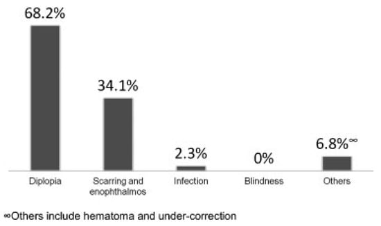 Bar chart showing the most common complication of postorbital floor fracture repair.