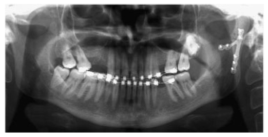 - Suzuki, T.; Kawamura, H.; Kasahara, T.; Nagasaka, H. Resorbable poly- L-lactide plates and screws for the treatment of mandibular condylar process fractures: a clinical and radiologic follow-up study. J Oral Maxillofac Surg 2004, 62, 919–924. [Google Scholar] [CrossRef] [PubMed]