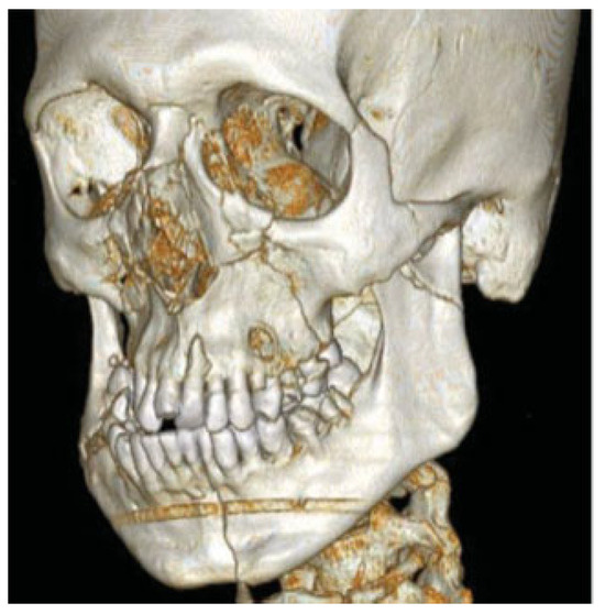 - Gassner, R.; Tuli, T.; Hächl, O.; Rudisch, A.; Ulmer, H. Cranio-maxillofacial trauma: a 10 year review of 9,543 cases with 21,067 injuries. J Craniomaxillofac Surg 2003, 31, 51–61. [Google Scholar] [CrossRef]