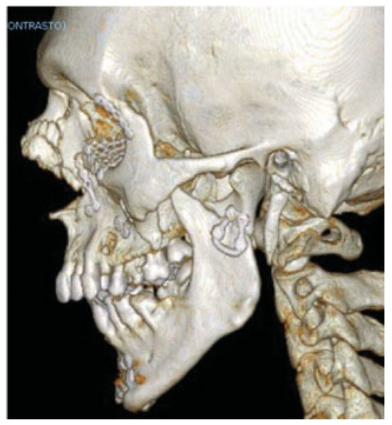 - Farmand, M.; Dupoirieux, L. The value of 3 dimensional plates in maxillofacial surgery. Rev Stomatol Chir Maxillofac 1992, 93, 353–357. [Google Scholar]