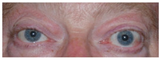 A 56-year-old Caucasian male patient with hyperthyroidism presented with progressively worsening double vision over a 4-year period. He also noted bilateral dry eyes and photophobia. He had no other significant medical history. He had been managed medically with propylthiouracil and had a normal TSH and stable serial TSI levels at the time of presentation.