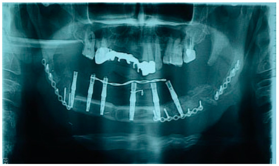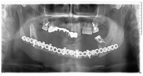 - Salgueiro, M.I.; Stevens, M.R. Experience with the use of prebent plates for the reconstruction of mandibular defects. Craniomaxillofac Trauma Reconstr 2010, 3, 201–208. [Google Scholar] [CrossRef] [PubMed]