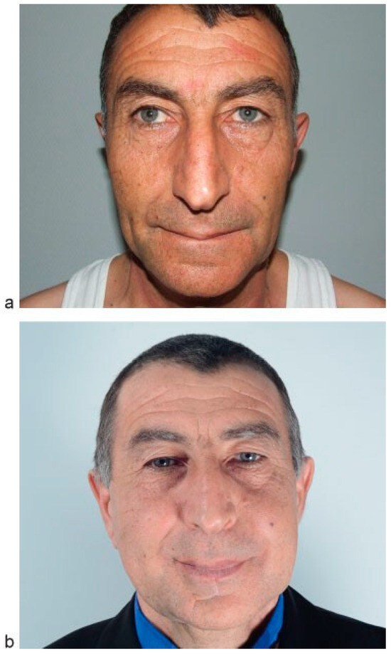 At this stage, the facial appearance with new mandible does not show any significant changes (Figure 10a,b).