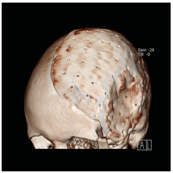 - Wiggins, A.; Austerberry, R.; Morrison, D.; Ho, K.M.; Honeybul, S. Cranioplasty with custom-made titanium plates—14 years experience. Neurosurgery 2013, 72, 248–256, discussion 256. [Google Scholar] [CrossRef]