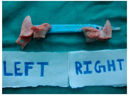 - Matsuura, H.; Miyamoto, H.; Ishimaru, J.; Kurita, K.; Goss, A.N. Effect of partial immobilization on reconstruction of ankylosis of the temporomandibular joint with an autogenous costochondral graft: An experimental study in sheep. Br J Oral Maxillofac Surg 2001, 39, 196–203. [Google Scholar]