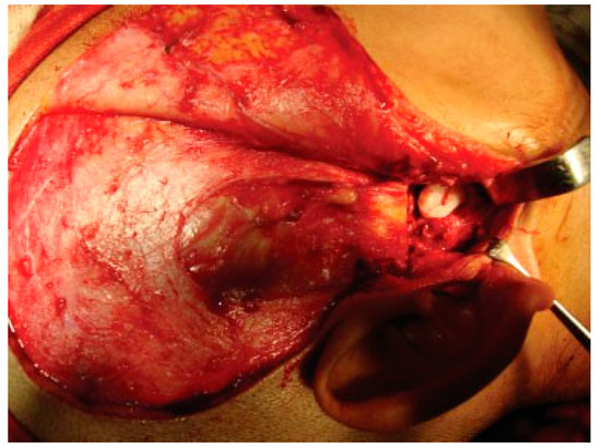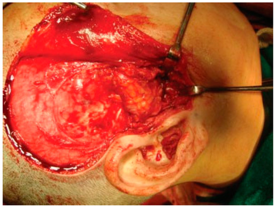 - Pogrel, M.A.; Kaban, L.B. The role of a temporalis fascia and muscle flap in temporomandibular joint surgery. J Oral Maxillofac Surg 1990, 48, 14–19. [Google Scholar]