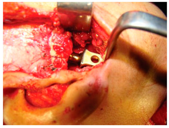 - Posnick, J.C.; Goldstein, J.A. Surgical management of temporomandibular joint ankylosis in the pediatric population. Plast Reconstr Surg 1993, 91, 791–798. [Google Scholar] [PubMed]