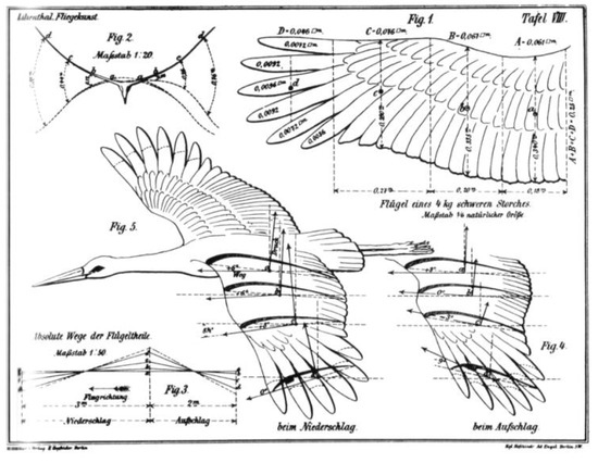 Scientific illustration on the flight of birds. Otto Lilienthal, Der Vogelflug als Grundlage der Fliegekunst, Berlin, 1889.