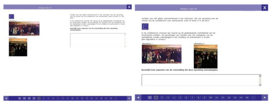 In the following, we present two examples, where eye tracking shed light on the processes underlying these effects that were carried out in ecologically valid scenarios. In the first example, we tested the split-attention effect (Jarodzka, Janssen, Kirschner, & Erkens, 2015). In our study, we used multimedia material on the topic of arts that is used nation-wide for assessment of all Dutch pupils at secondary school level. Moreover, our participants were 16 years old pupils. So, we used ecologically valid material that was tested with the actual target group. The material itself consisted not only of one task, but of eight tasks. Each task consisted of a text paragraph describing the task background and additional multimedia material, such as pictures, text or videos. We compared two versions of this material (Figure 2): In one version, all additional material was presented on one side of the screen and the task text on the other. This is a classic split-attention design as the pupils must visually search for the related information. In the second version, all additional material was placed within the text, right where it was referred to. This corresponds to a classic integrated design as it allows the pupils to process the multimedia information right when it is needed.