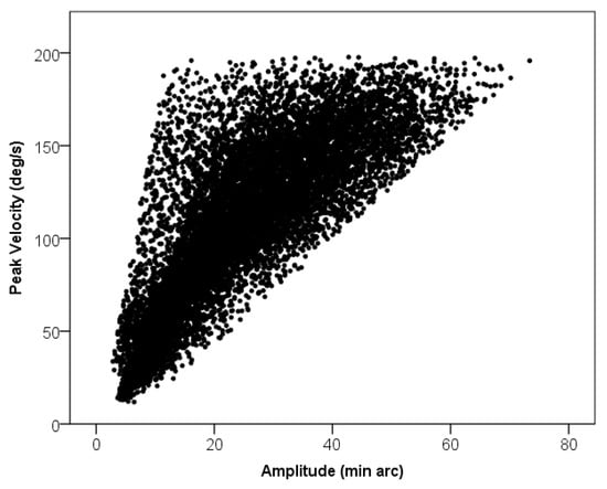 Microsaccades have often been shown to follow the main sequence; an approximately linear relation between the amplitude of the eye movement and the peak velocity. The peak microsaccade velocities were plotted against their amplitudes in our data. A significant linear relationship was observed (Figure 2).