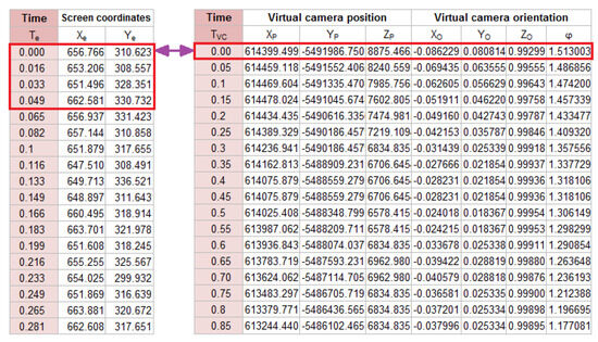 The connecting module combines two partial CSV files based on timestamps. The first step is joining trimmed data (from the eye-tracker and from the movement of the virtual environment) by beginning markers and end depiction of the 3D scene. The begin-ning in both records is designated as time 0 (Figure 2).