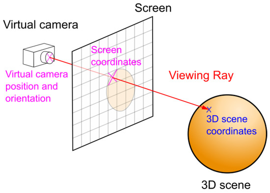 These 3D coordinates can be calculated from the val-ues of the position and orientation of a virtual camera and the 2D coordinates of the gaze on the screen. 2D screen coordinates are obtained from the eye-tracking system, and the position and orientation of the virtual camera are recorded with the 3DgazeR tool (Figure 1).