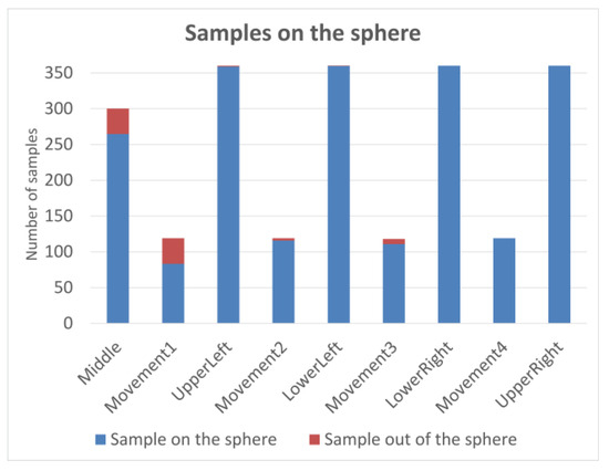 Evaluation of the data validity. Red color corresponds to the data samples where gaze was not recorded on the target sphere.