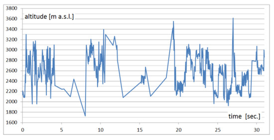 When analyzing 3D eye-tracking data, it would be appropriate to concentrate on analyzing the Z coordinate (height). From the data recorded with 3DgazeR, the Z coordinate’s changes over time can be displayed, so the elevations the participants looked at in the model during the test can be investigated. Data from the program ArcScene were exported into a DBF table and analyzed in OpenOffice Calc. A scatter plot with data points connected by lines should be used here. A graph for one participant (see Figure 10) or multiple participants can be created. A graph of Z coordinate raw data values was created in this case.