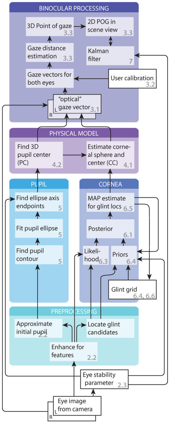 A flowchart of the gaze tracking solution. The numbers refer to sections and subsections where the item is described.