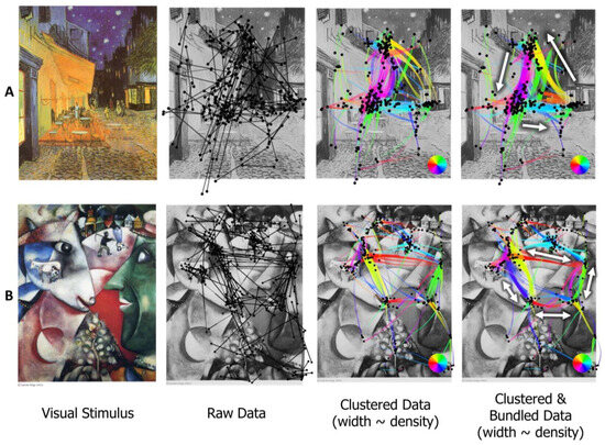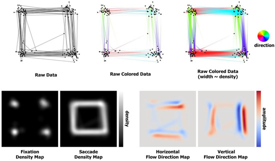 - Burch, M. 2017. Eye movement plots. In Proceedings of the 10th International Symposium on Visual Information Communication and Interaction. pp. 101–108. [Google Scholar] [CrossRef]